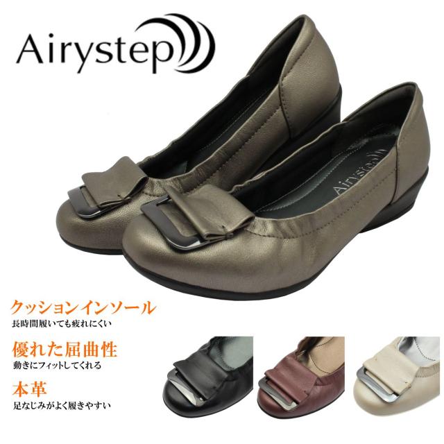 Airystep エアリーステップ レディース バレエシューズ 7586 3E パンプス バックル フラット 本革 レザー