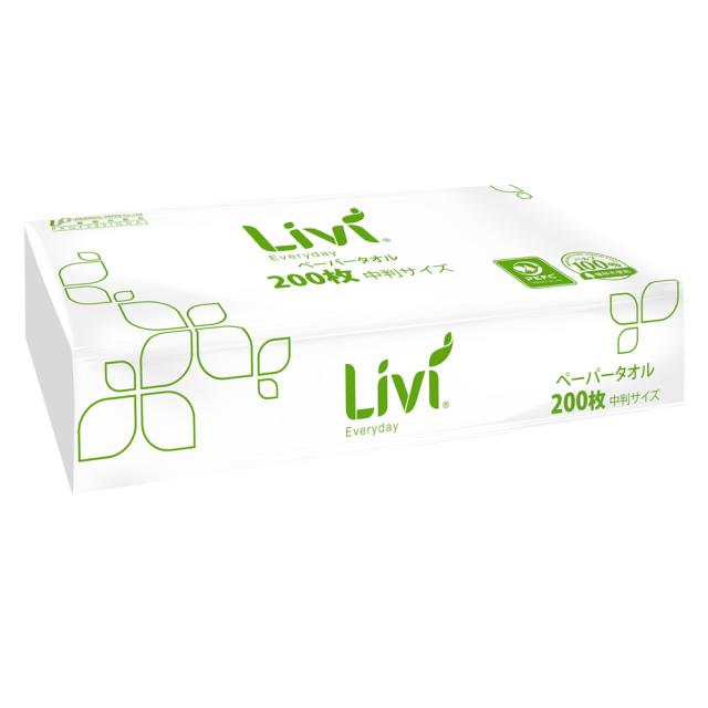 ペーパータオル 業務用 パルプ100% リビィ エブリディ 食品OK 中判サイズ 205x220mm 200枚x1パック