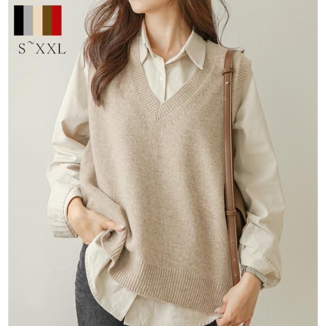 ニットベスト レディース トップス 重ね着 ノースリーブ 秋コーデ