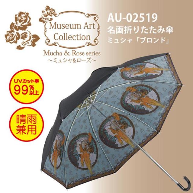 ユーパワー 名画折りたたみ傘 ミュシャ「ブロンド」 AU-02519 UVカット率99% 紫外線カット レディース 婦人傘