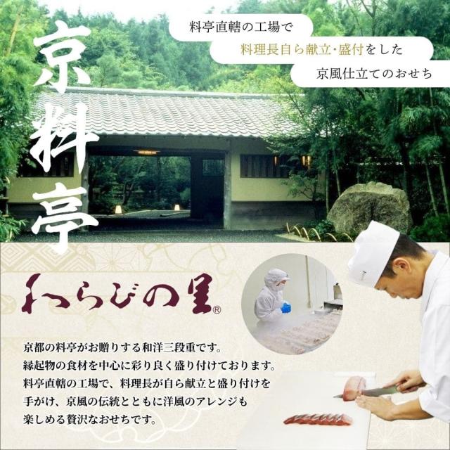 【12/31着 時間指定不可】京・料亭 わらびの里 和洋料亭おせち三段重 3〜4人前 45品目