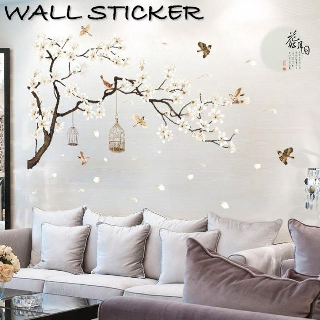 ウォールステッカー 壁ステッカー 壁紙シール シール式 木 ツリー 鳥 フラワー お花 和風 ルームデコレーション ウォールデコ