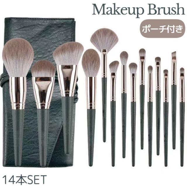 メイクブラシセット 14本セット ポーチ付き レディース 女性 化粧ブラシ 化粧筆 コスメブラシ ふで メイクアップブラシ 多種