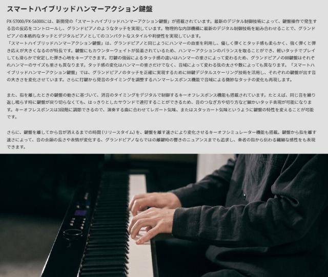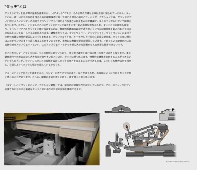 鍵盤:スマートハイブリッドハンマーアクション鍵盤(仕上げ 白鍵:木製部にスプルース材使用/象牙調、黒鍵:黒檀調)