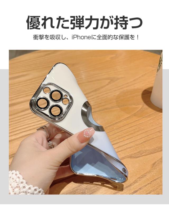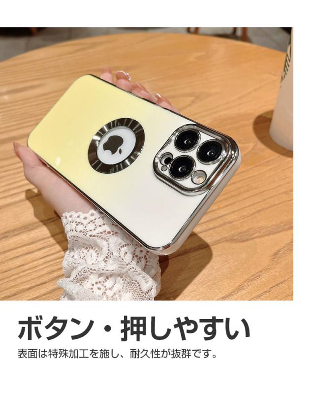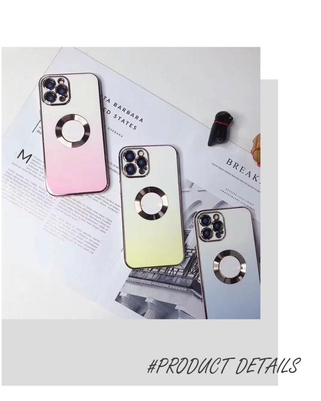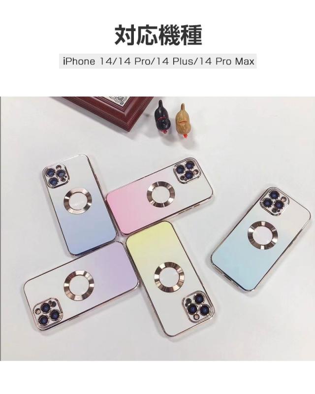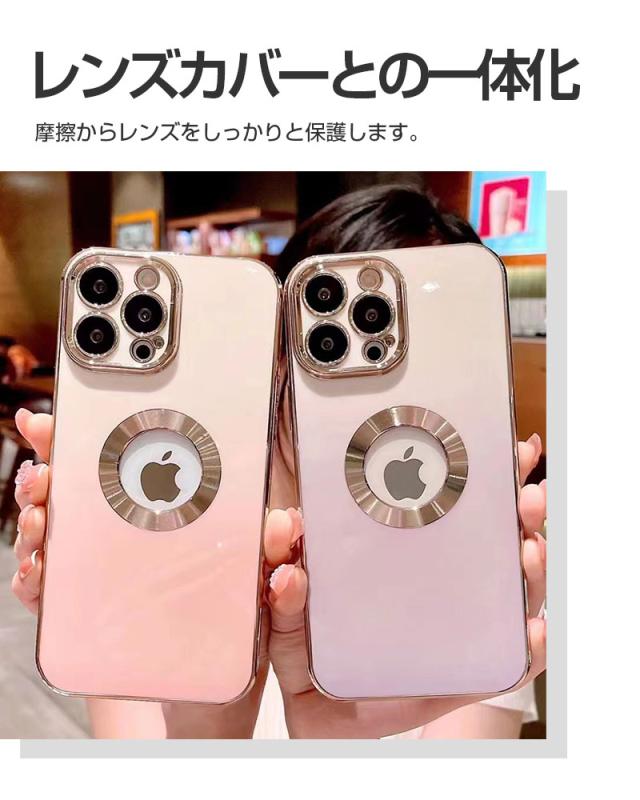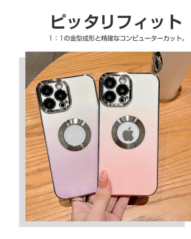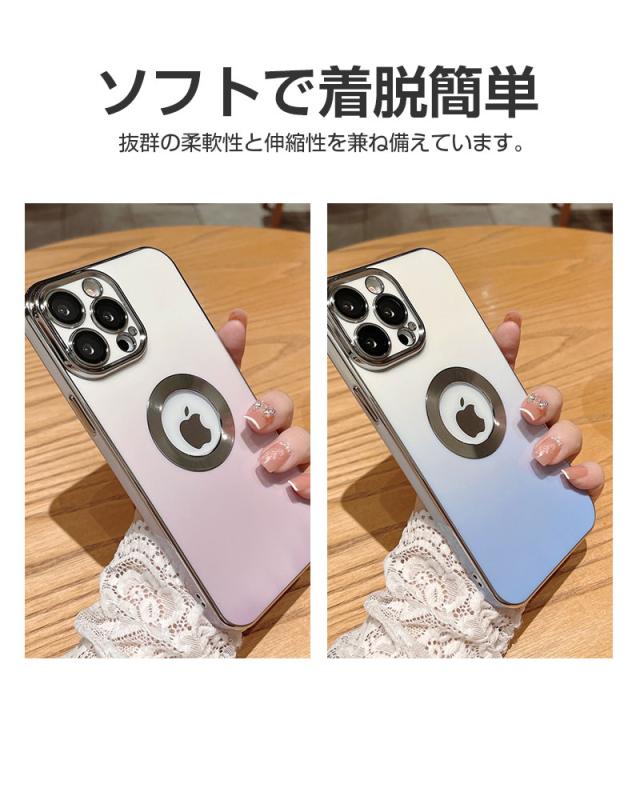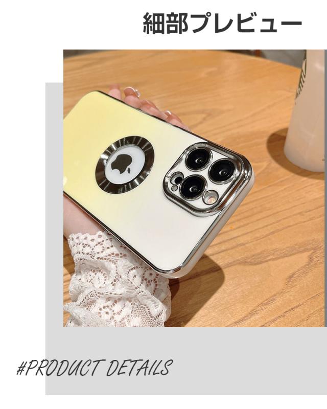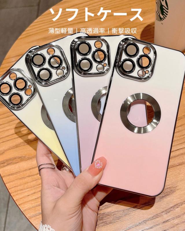 【グラデーションカラー+メッキ加工】 鮮やかな色から白へ徐々に融合するグラデーションカラーのデザインを採用しており、ワンカラーより、さらにファッションナブルで、コーディネートもしやすくなります。 フレーム周りとカメラ周りはメッキ処理をし、繊細かつ洗練された高光沢仕上げを実現します。また、iPhoneのロゴの所は空けてる設計になっています、周りはメッキリングで装飾し、金属の質感はもっとリアルで、さりげなくエレガントに!