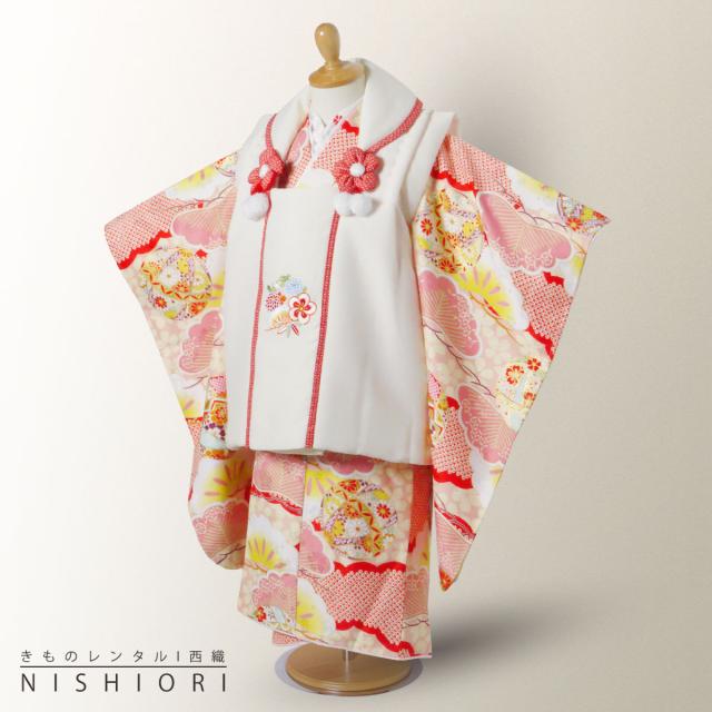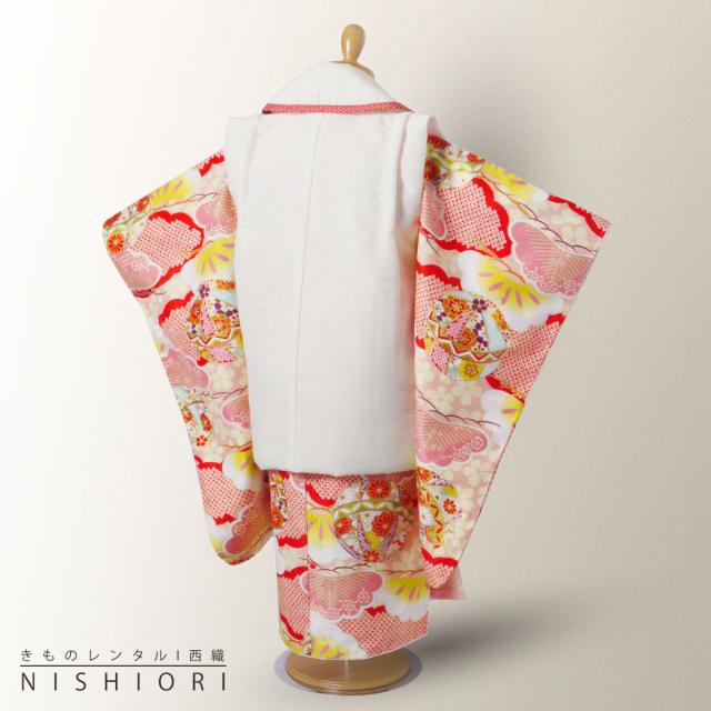 小町kids ブランド レンタル 3歳の七五三 女の子 被布コート 着物 フルセット 貸衣装 三歳 古典 モダン クリーム ピンク