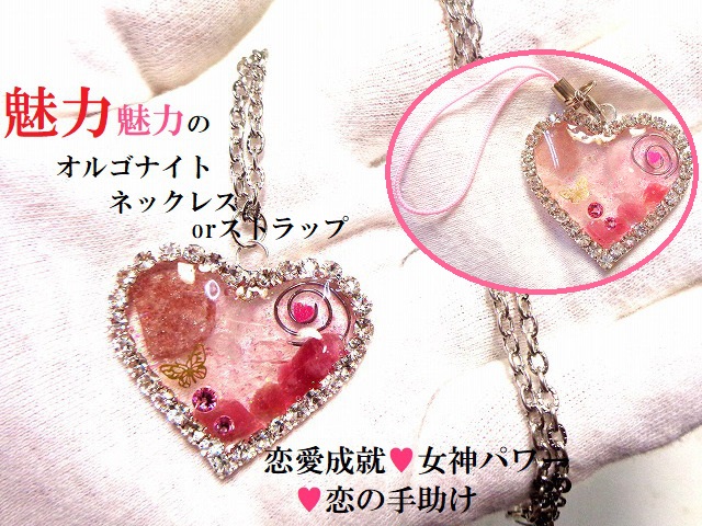 女神パワー・恋の手助け・内面の美しさ・恋愛成就・恋の障害打破・恋愛運・魅力★デープピンクエピソード・ローズクォーツ・ピンクトルマリン★LOVE★ハート★蝶★魅力魅力のオルゴナイトネックレス★オルゴナイト★ペンダント・ストラップ★パワーストーン★護符(霊符)