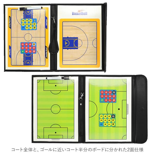 | 商品説明 | ・スポーツの練習や試合に欠かせない、作戦ボード! ・チームプレイや対戦試合をシミュレーションする、マグネットタイプの作戦盤。 ・ボード上を使って説明することで伝わりやすくなり、理解も深まる!振り返り時に課題と対策が見えやすいのもポイント。 ・開口部もマグネット仕様で開閉がラクラク。 ・コート全体と、ゴールに近いコート半分のボードに分かれた2面仕様。 ・自分のチームと相手のチームのメンバー、ボールの動きを表現できる、1〜11までのマグネット&ボールの絵柄が書かれたマグネット×各2付き。 ・イレイサー付きのペンで、文字の書き込みと消すことが可能。 ・A4とほぼ同じサイズに収まる折りたたみ式で、持ち運びに最適。 ・取り外し可能な持ち手ストラップ付き。 ・ポジショニングについて勉強したり、戦術の予習・復習をする際にも活躍。 |