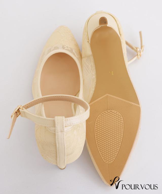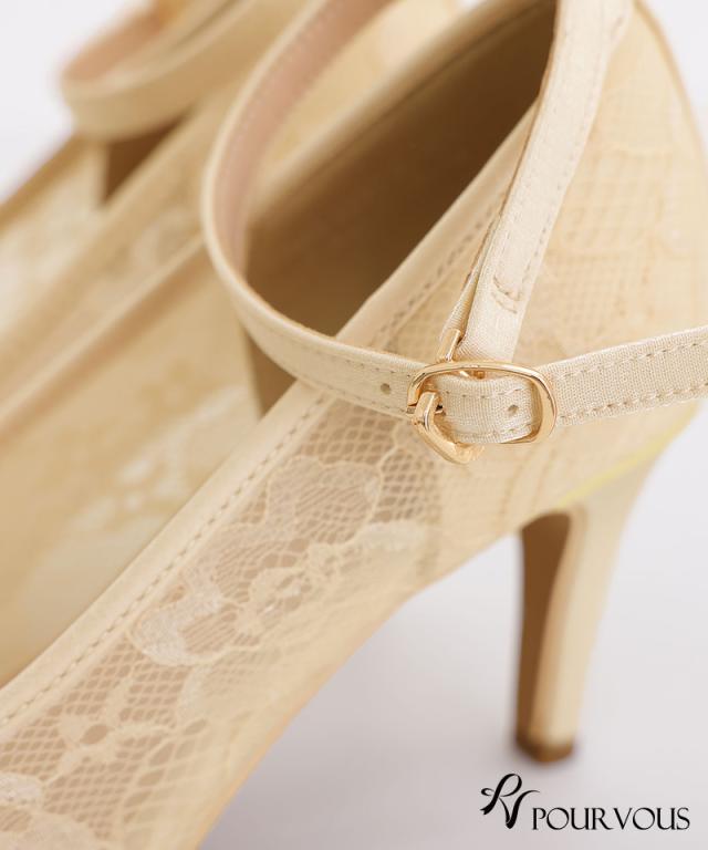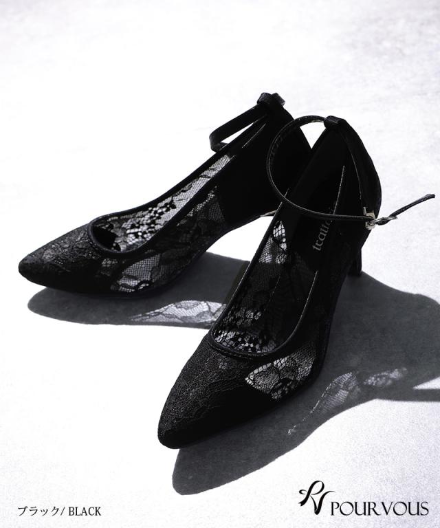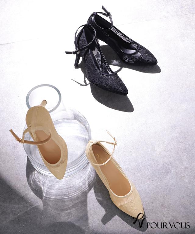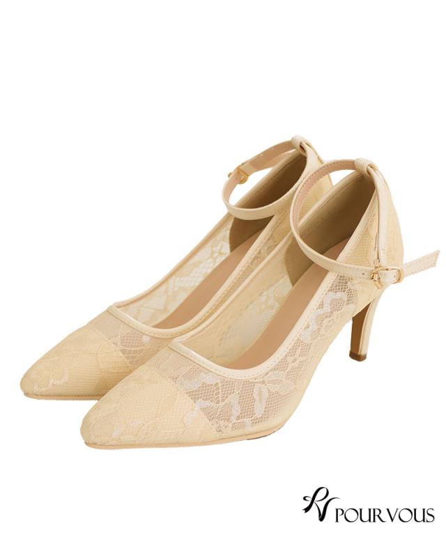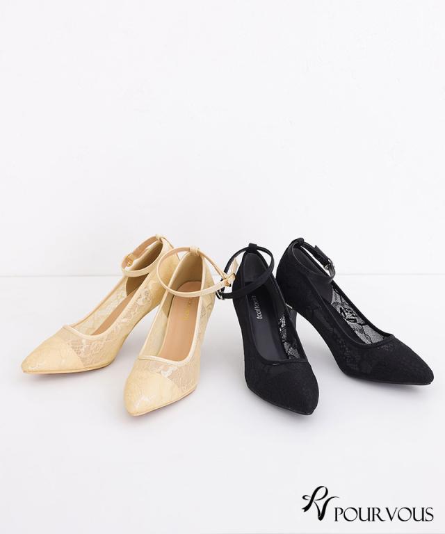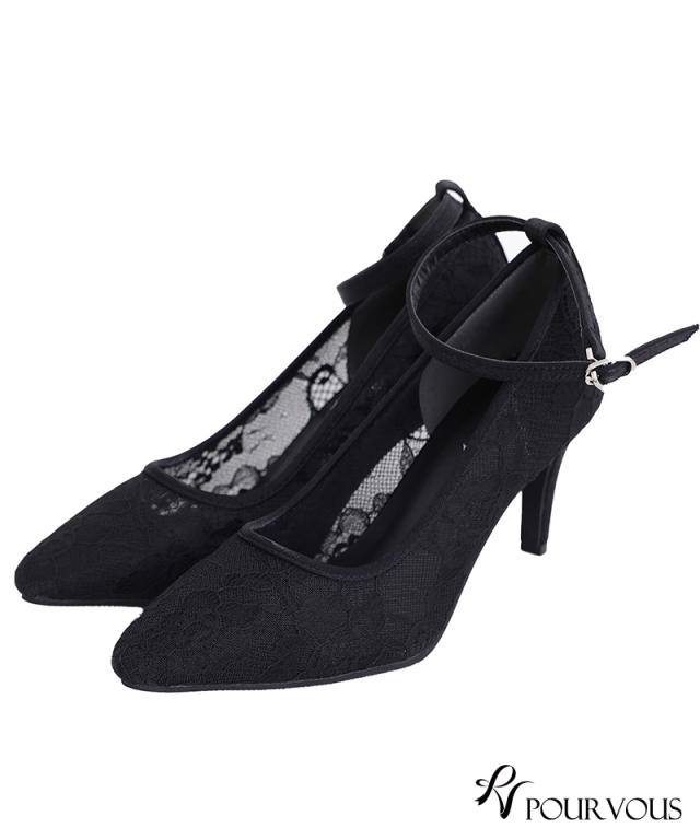 ■透け感のある総レースが上品なストラップ付パンプス