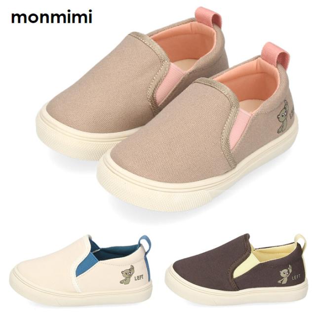 ベビーシューズ キッズシューズ スリッポン スニーカー 韓国 103 ベージュ チャコール アイボリー 子供靴 くまちゃん 男の子 女の子 モンミミ monmimi