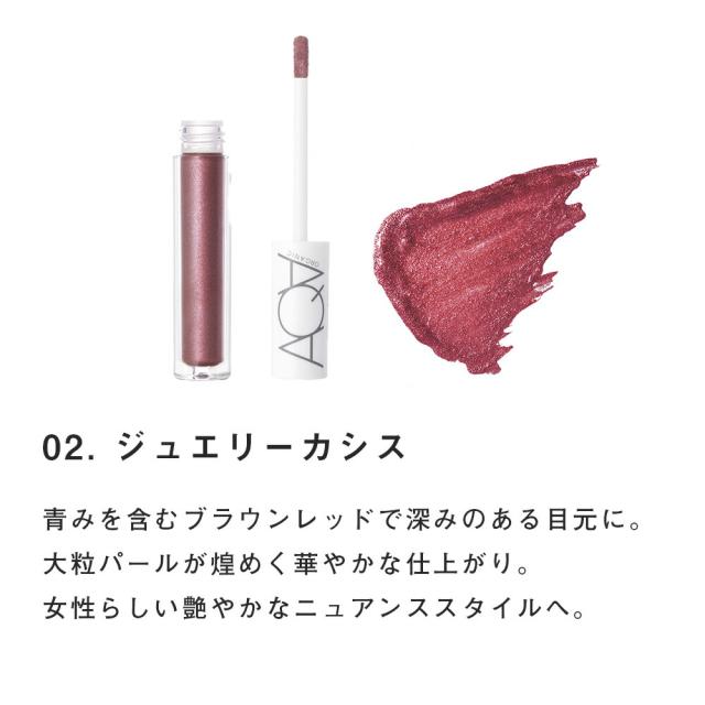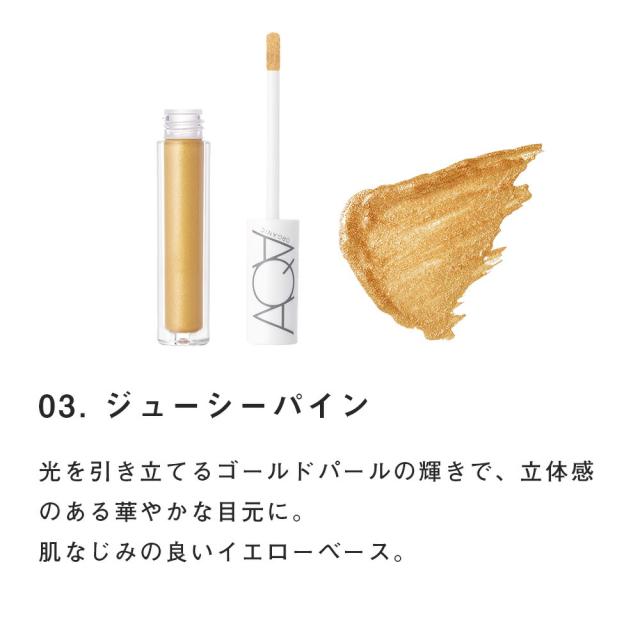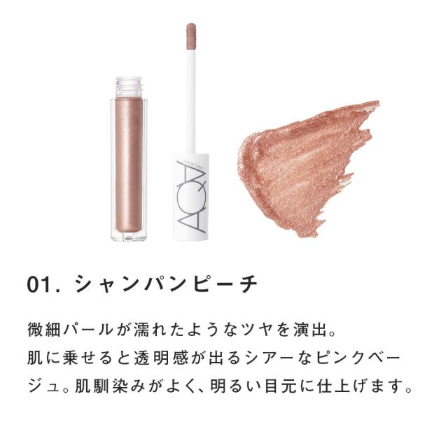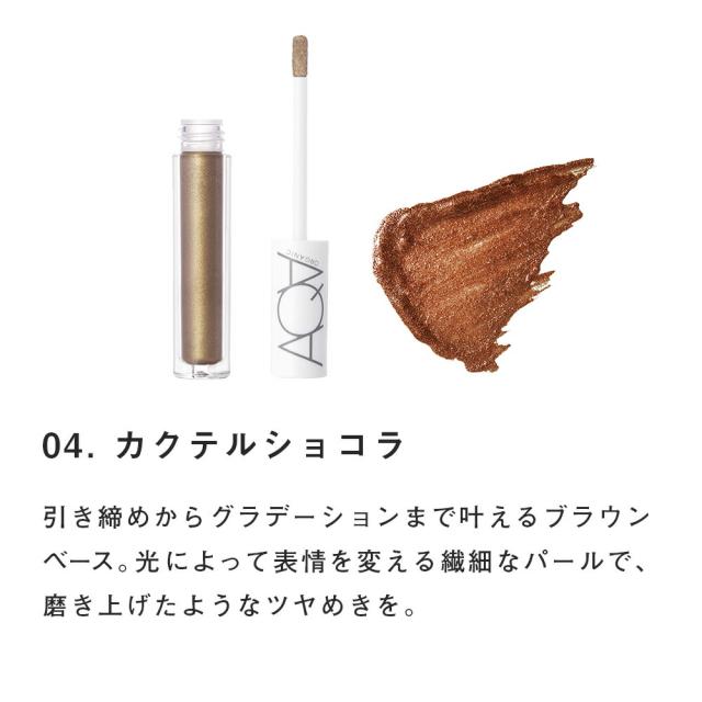 みずみずしく伸び、ピタッと密着。 みずみずしさ、ジューシーさがキーワードのアクア・アクアからブランド名を体現したリキッドシャドーが新登場。 | POINT