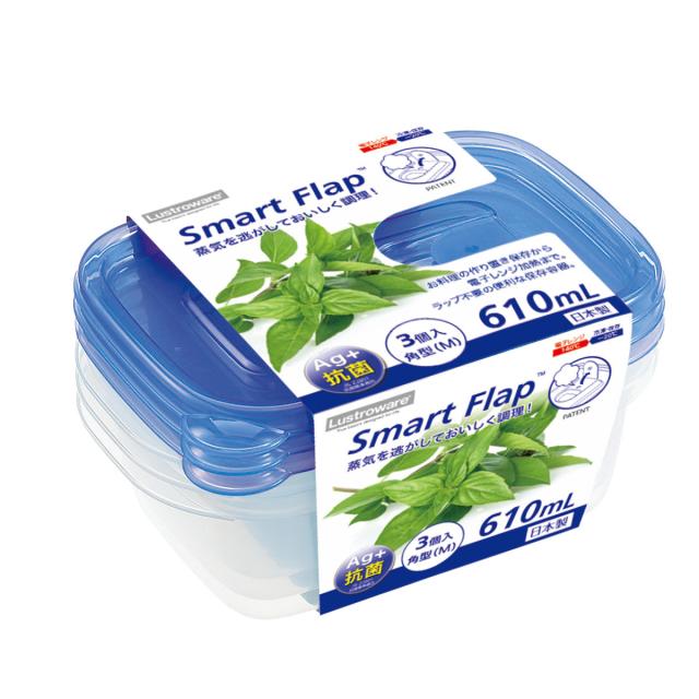 保存容器 610ml スマートフラップ BA 角型 M 3個入 ( 日本製 抗菌 プラスチック フードコンテナ 冷凍 冷蔵 保存 容器 プラスチック容器 食品保存容器 抗菌加工 Ag+ 目盛り付き 電子レンジ対応 エアー弁 作り置き )