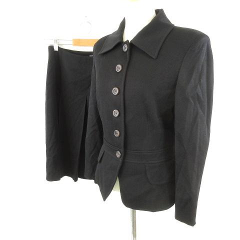 【中古】MONDRIAN スーツ セットアップ ジャケット 長袖 膝丈スカート 黒 40 *E468 レディース