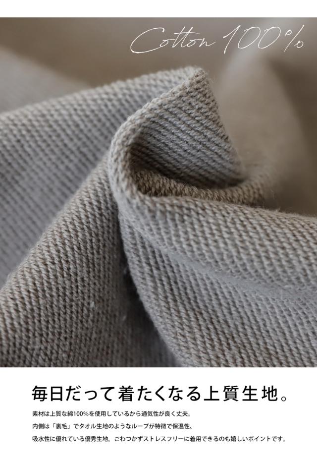 綿100%の裏毛生地で着心地も良く、毎日着たくなるアイテム!