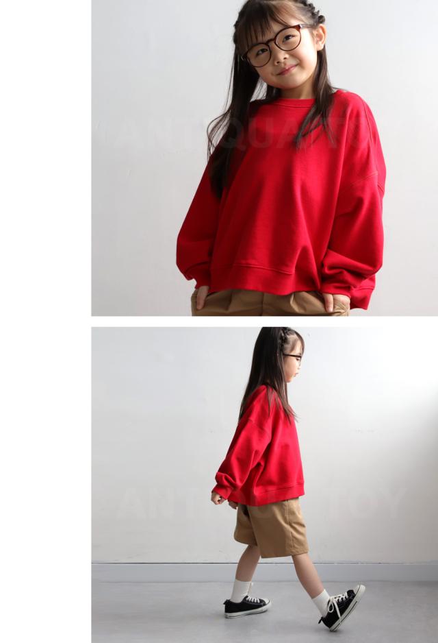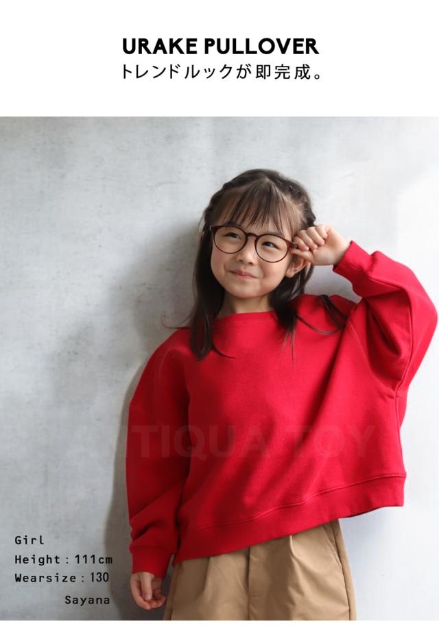 【検索ワード】ショート丈裏毛プルオーバー スウェット キッズ 子供服 トップス 綿100 無地 長袖 裏毛 トレーナー プルオーバー クルーネック 丸首 リブ ショート丈 前後差 ドロップショルダー オーバーサイズ 綿 コットン 暖かい カジュアル ゆったり 裏毛トップス ボリューム袖 ブラック グレー グリーン ブルー レッド ピンク ホワイト イエロー アイボリー 黒 緑 青 赤 黄色 白 親子 お揃い リンクコーデ 親子コーデ ファミリー おそろ オソロ 低学年 高学年 120cm 130cm 双子コーデ プレゼント お祝い 出産祝い 秋 冬 男の子 女の子 女児 男児 通園 通学 お出かけ お洒落 アンティカ antiqua おしゃれ 可愛い かっこいい
