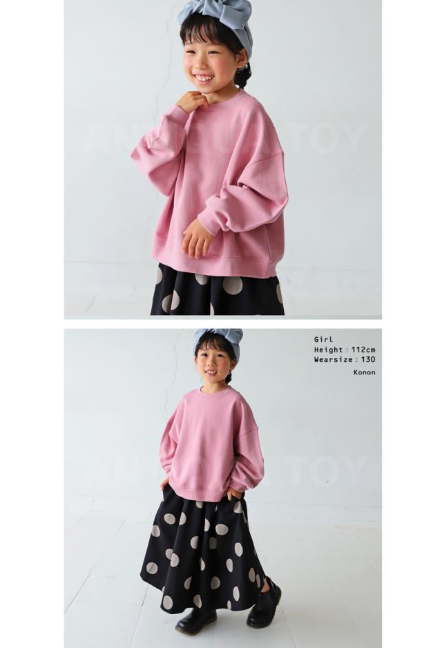 tya-00019 キッズ 子供服 男の子 女の子 ジュニア 低学年 高学年 トップス 綿100 無地 長袖 裏毛 トレーナー プルオーバー クルーネック 丸首 リブ ショート丈 前後差 ゆったり