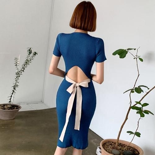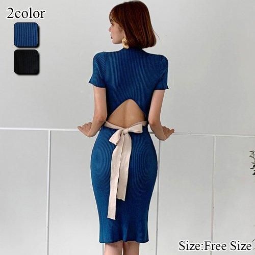 オープンデザインでバックスタイルに注目のリブニットワンピ(キャバドレス・CABARETDRESS)。