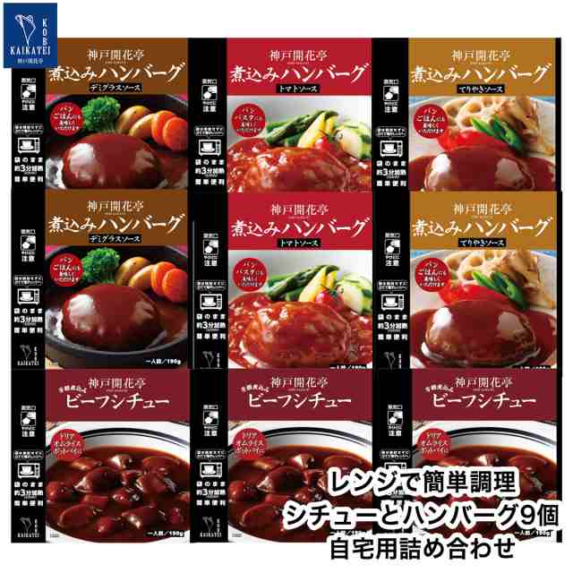 詰め合わせ ビーフ シチュー ハンバーグ 9食入 レトルト おかず 惣菜 食品 まとめ買い セット 神戸開花亭 母の日 父の日 お歳暮 お中元 お年賀 2025 常温保存 のし・包装不可 送料無料 一部地域は追加送料あり 福袋 ポイント消化