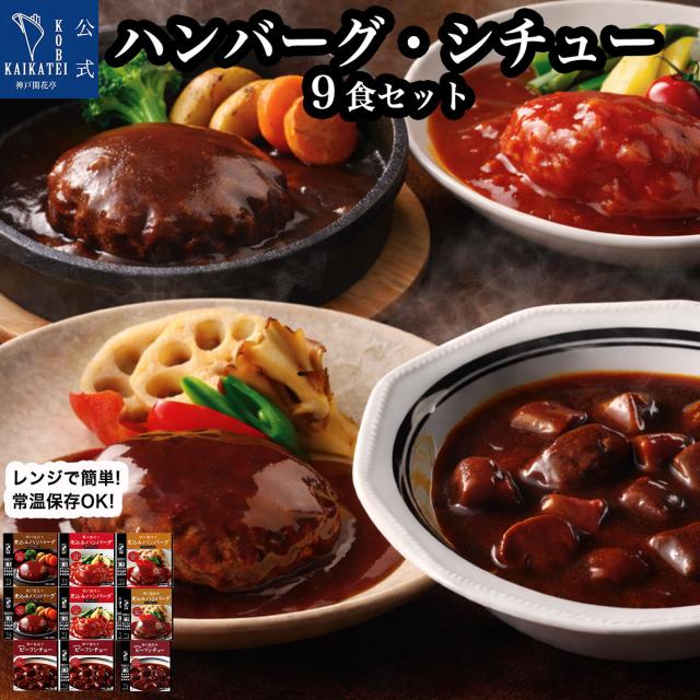 レトルト食品 惣菜 詰め合わせ ハンバーグ ビーフシチュー 4種9個 セット 神戸開花亭 洋食 おかず 常温保存 レンジ対応 湯煎 温めるだけ 簡単調理 一人暮らし 仕送り まとめ買い 保存食 備蓄 自宅用 送料無料 のし 包装不可 簡易梱包 母の日