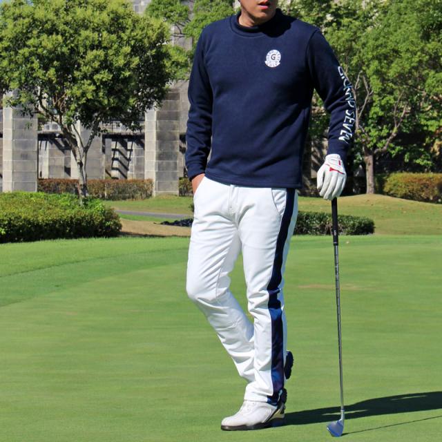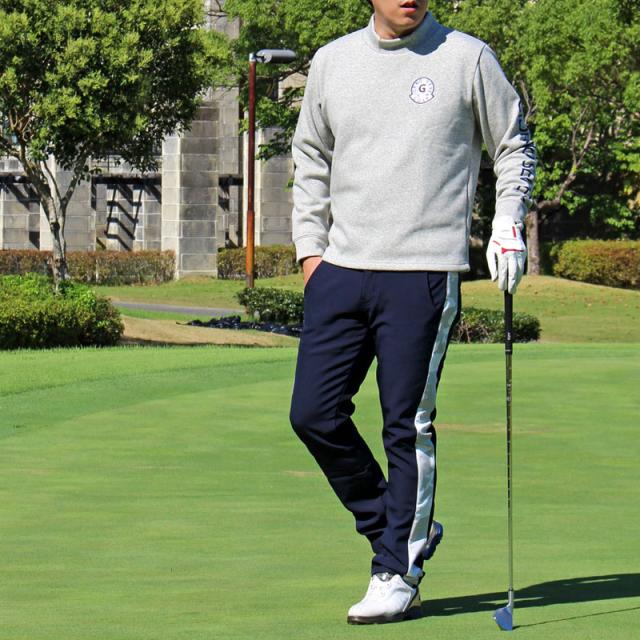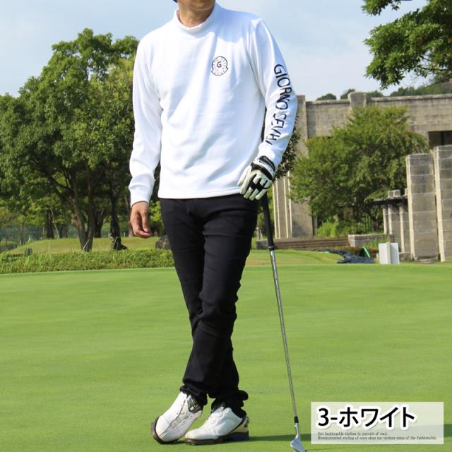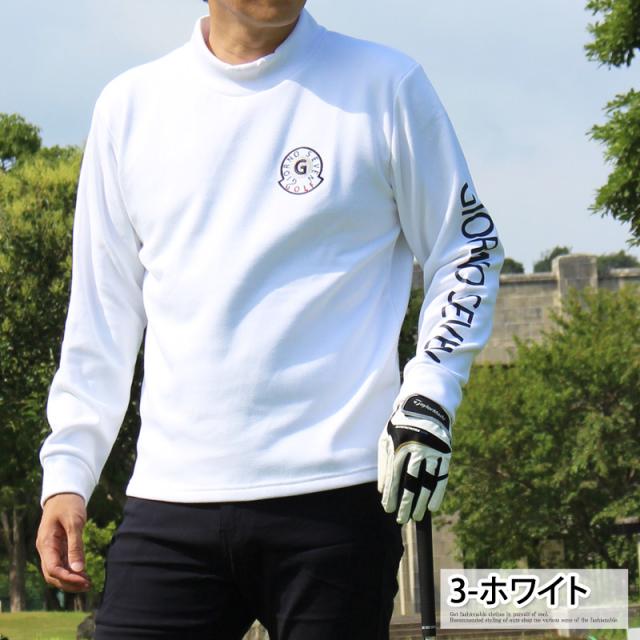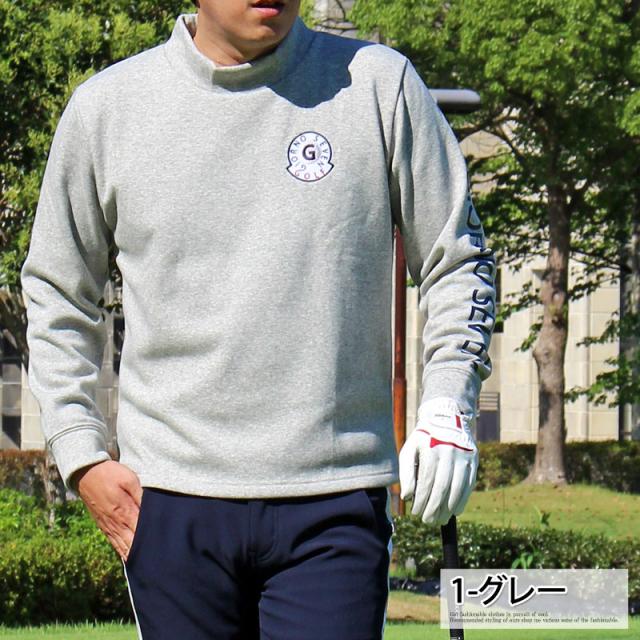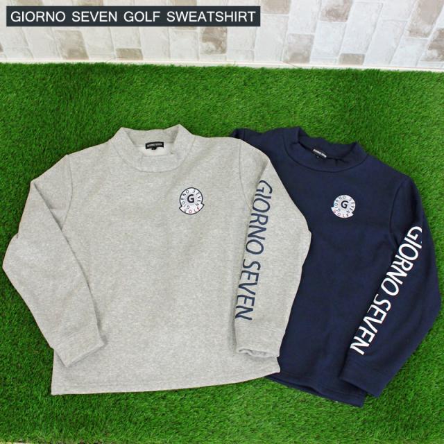 M~XXL 秋新作 ゴルフトレーナーメンズ ゴルフウェア 暖かい裏起毛シャギーボアフリース 大きいサイズ GIORNO SEVEN ジョルノセブン スウェット ハイネック モックネック 袖ロゴプリント 刺繍ワッペン おしゃれ トップス 送料無料 秋冬