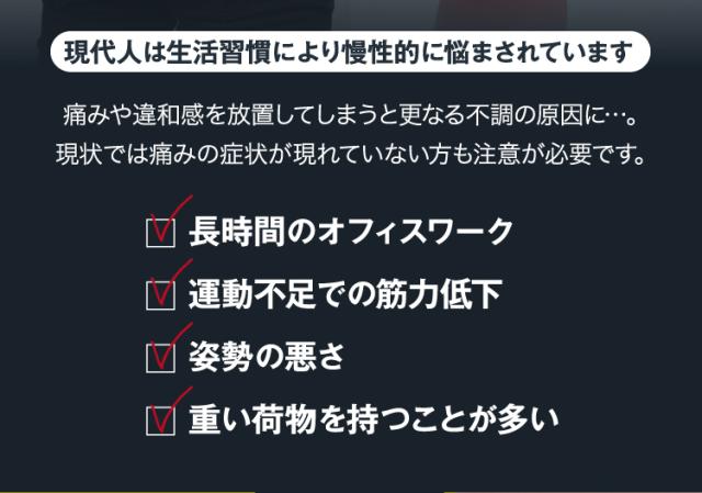 腰痛、肩こりに伴う肩の痛み、関節痛、筋肉痛、腱鞘炎に