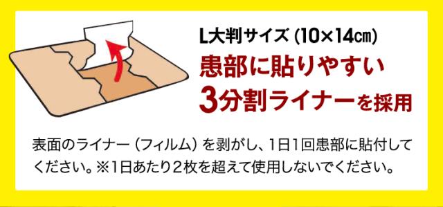 表面のフィルムをはがし、1 日1 回患部に貼付してください。