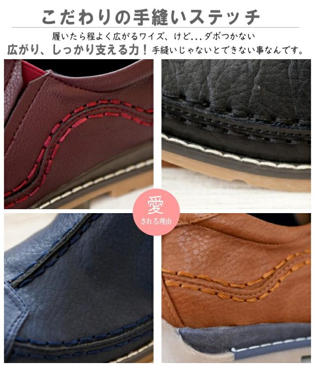 ダブルステッチ・サイドゴム・スリッポンシューズ