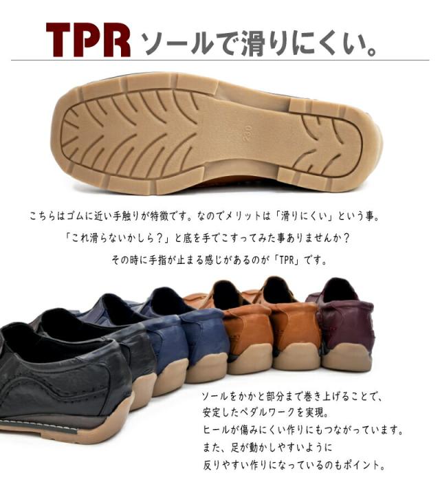 靴底が滑りにくいTPRソールを使用。だからドライビングシューズとしても