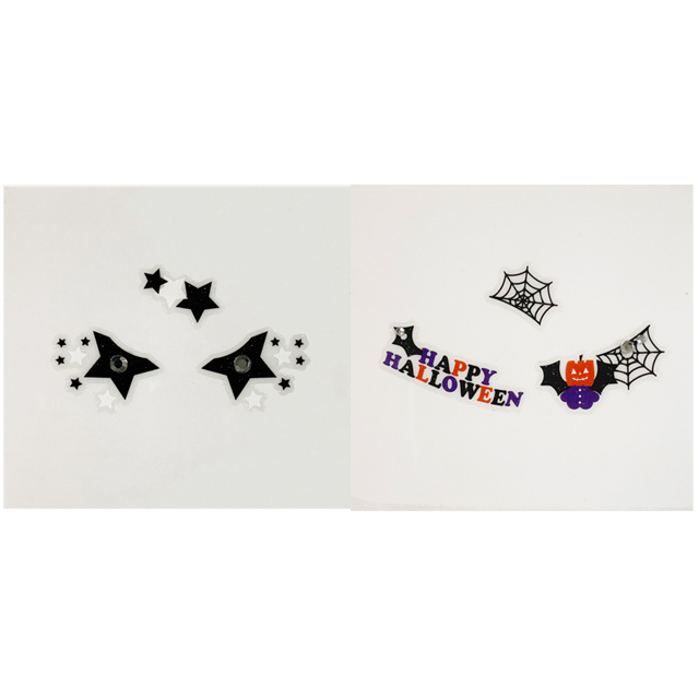 目元に貼るだけで、ハロウィンを思いっきり楽しみたくなる楽しいフェイスシールです。