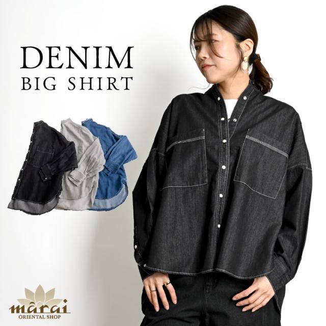 【 レディース トップス シャツ デニム デニムシャツ ブラウス デニムジャケット ビッグシャツ デニムビッグシャツ Gジャン ジージャン ライトアウター ジャケット 羽織 羽織り 羽織もの 上着 前開き 前ボタン フロントボタン 長袖 長そで 十分袖 十分そで 10分袖 フリンジ 襟フリンジ 襟 デザイン襟 フリンジデザイン スタンドカラー バンドカラー シェルボタン 貝ボタン ボタン ポケット 胸ポケット ベーシック スタンダード シンプル カジュアル おしゃれ オシャレ お洒落 かわいい カワイイ 可愛い M L LL XL 大きいサイズ 大きい 大きめ ゆったり 楽ちん 楽チン オーバーサイズ ビッグシルエット 抜き襟1寒さ対策 防寒対策 冷房対策 デニム生地 デニム素材 ハリ感 後ろ下がり お尻隠れる 体形カバー 華奢見え レイヤード 着回し ユーズドライク ユーズド風 USED風 ヴィンテージ風 ヴィンテージライク ビンテージ風 ビンテージライク 色落ち メンズ メンズライク 大人 オトナ 灰色 黒 青 紺色 藍色 ネイビー インディゴブルー グレー ライトグレー ブラック ブルー コットン コットン混 綿混 綿 通勤 OL 通年 オールシーズン デイリー デイリー使い 普段使い 春 春物 春服 秋 秋服 冬 冬服 冬物 服 新作 新着 】