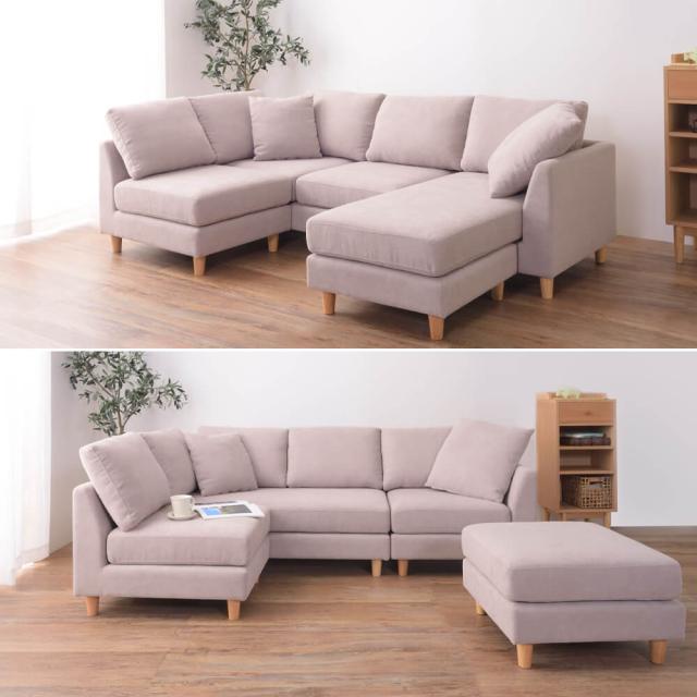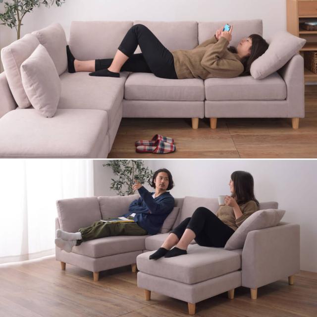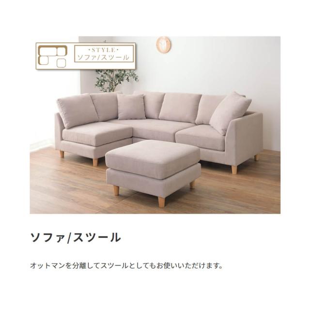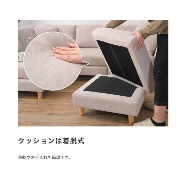 Amour(アムール)カウチソファー ベージュ ソファ ソファー 3人掛け カウチソファ 北欧 カバーリング オットマン付き ク