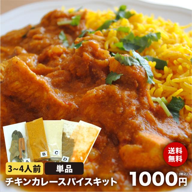 送料無料 単品 チキンカレー スパイス キット 3〜4人前 レシピ付き ターメリックパウダー 付き 1000円 ポッキリ 使い切り お試し 手作り スパイス カレー ターメリックライス 本格 インドカレー グリーンカルダモン ブラウンカルダモン