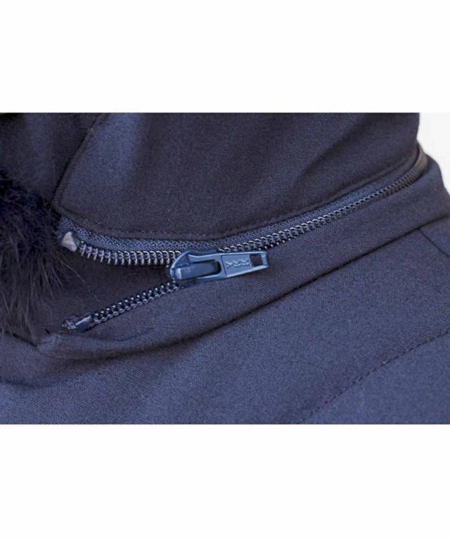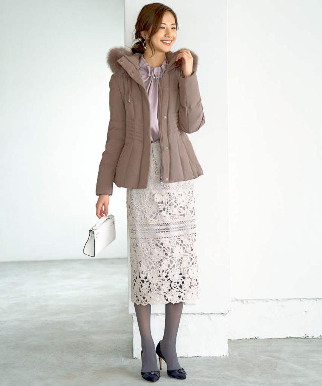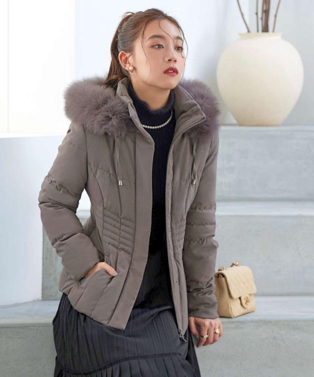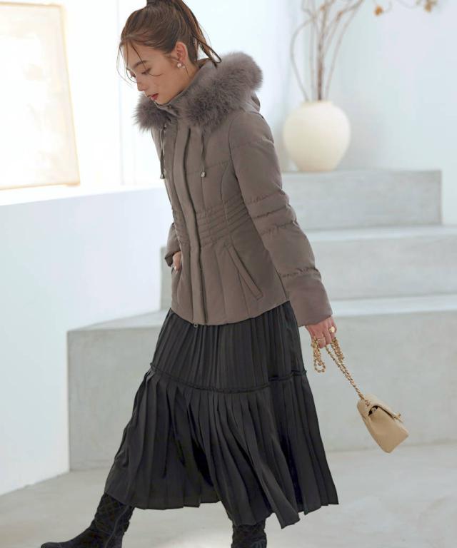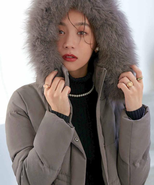 シンプルなデザインながらも顔周りを彩るリアルファーで高級感漂う大人スタイルに。