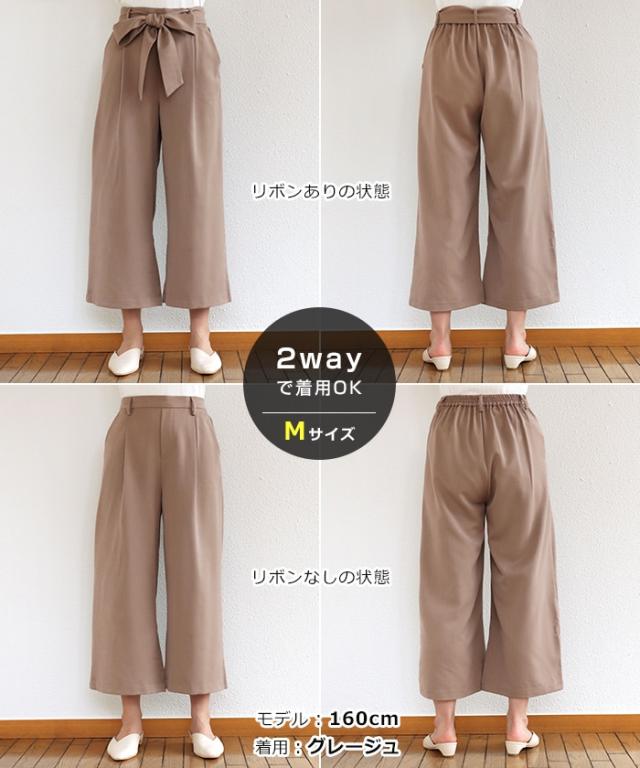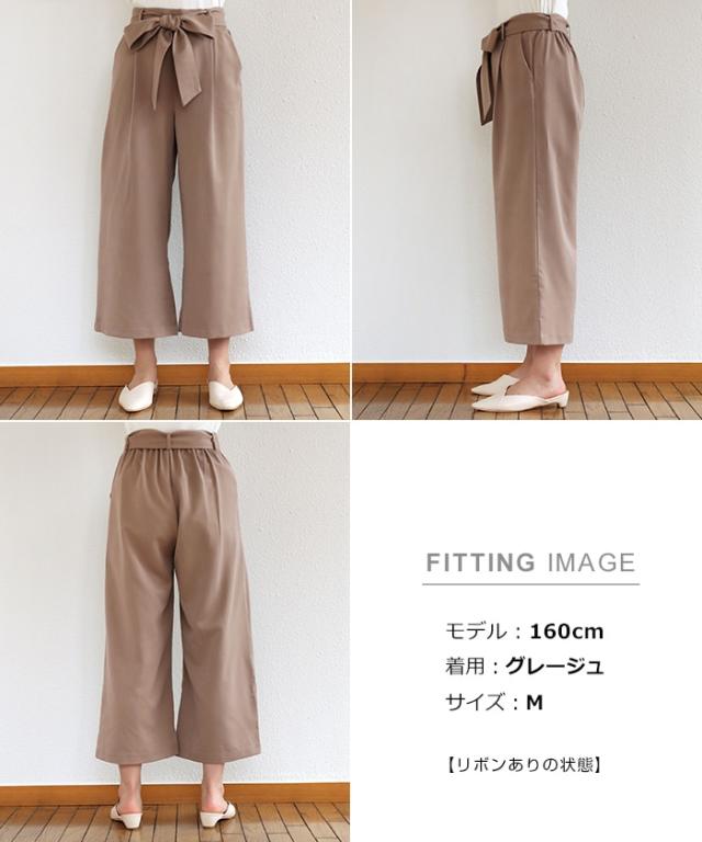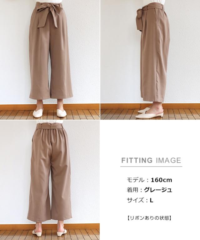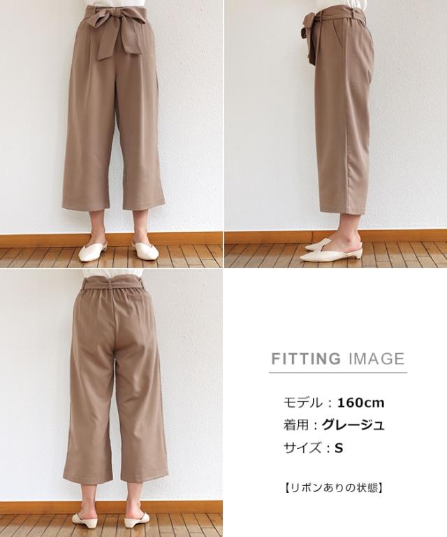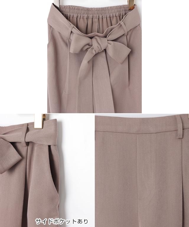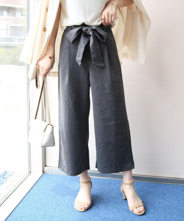 きれいめ ツイル リボン クロップド丈 ワイドパンツ