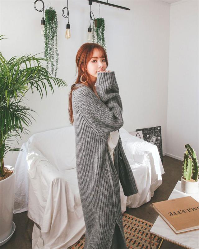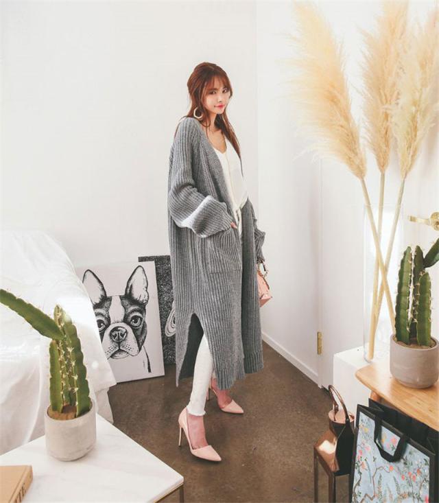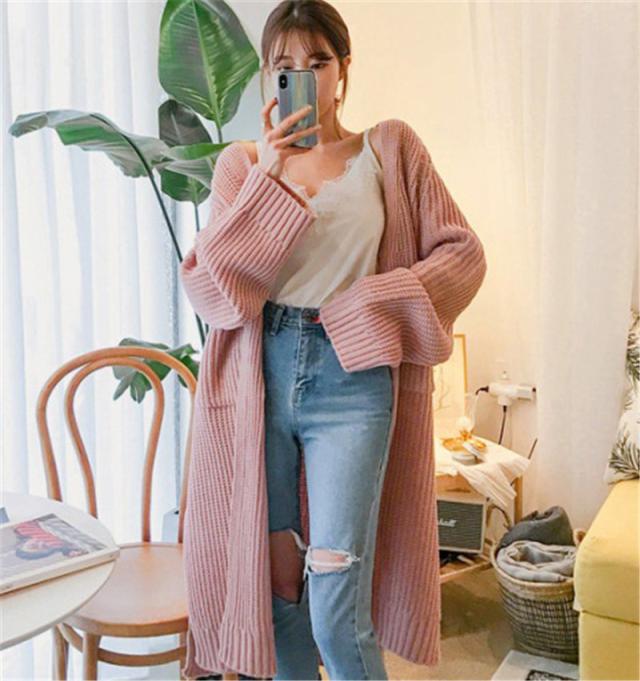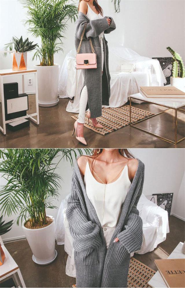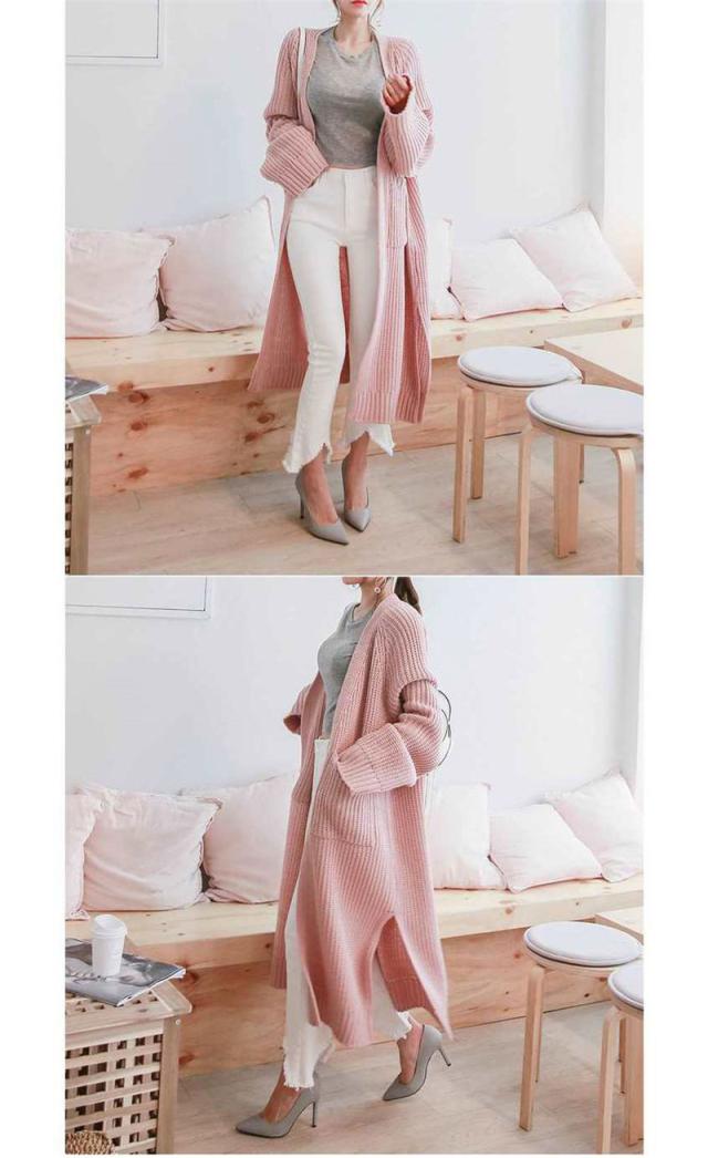 カーディガン レディース ニットセーター ロング丈 長袖 厚手 リブ 無地 秋冬春 羽織り シンプル ベーシック カジュアル ゆっ