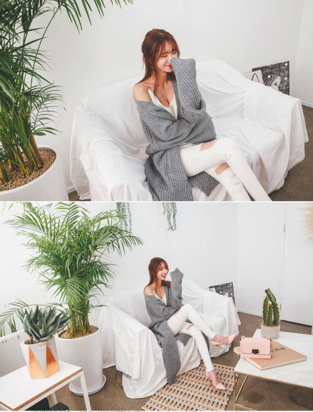 お洒落女子に格上げしてくれるVネックカーディガン、華奢な印象を与えてくれる一着