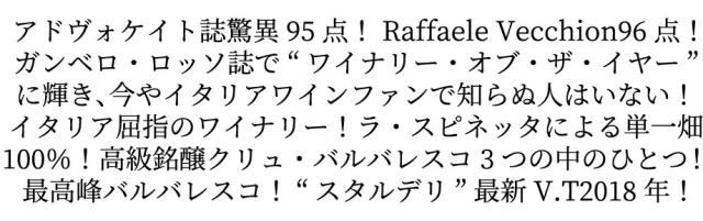 バルバレスコ ヴィニェート スタルデリ 2018 蔵出し品 ラ スピネッタ社 DOCGバルバレスコ 正規品 オーナー ジョルジョ リヴェッティ