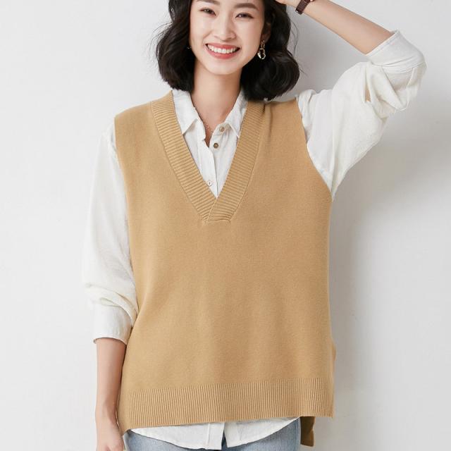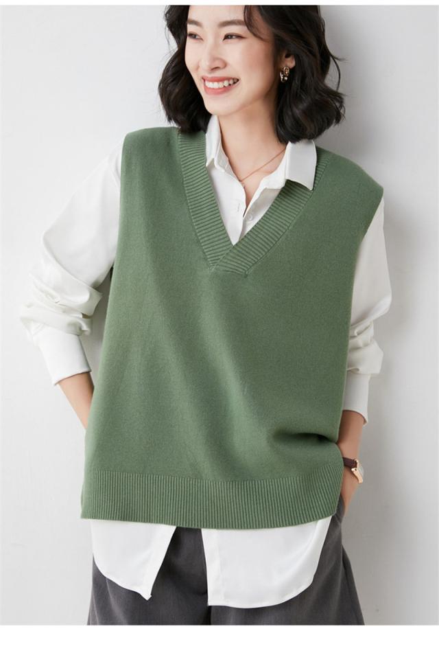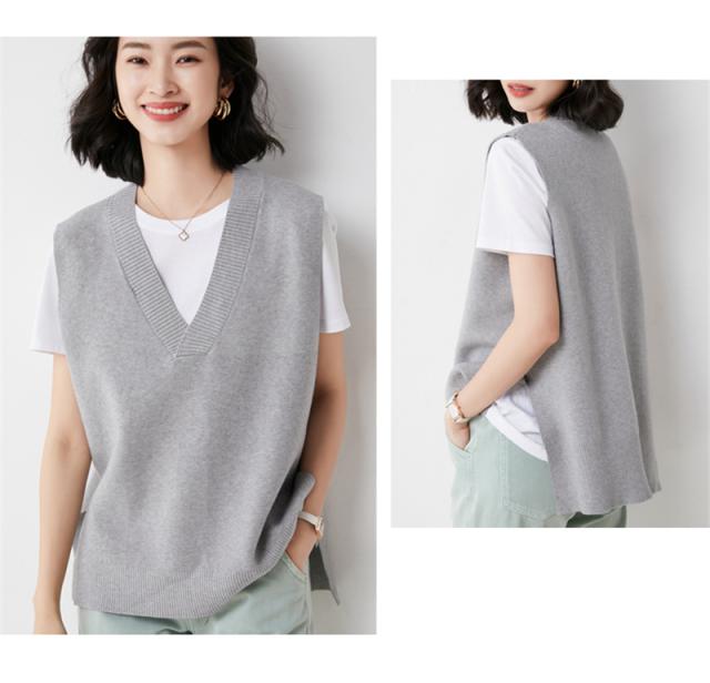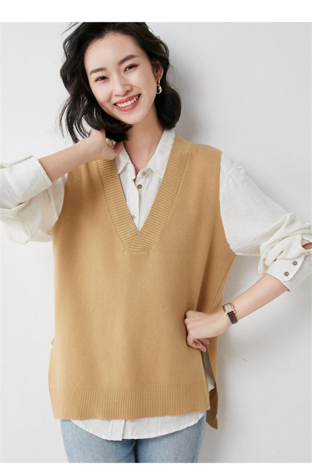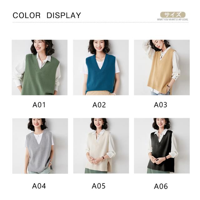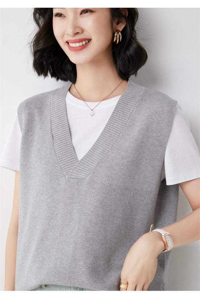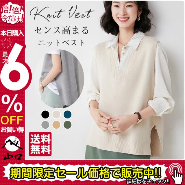 ニットベスト レディース チョッキ トップス Vネック 柔らか ゆったり プルオーバー ベスト ジレー セーター 無地 秋コーデ