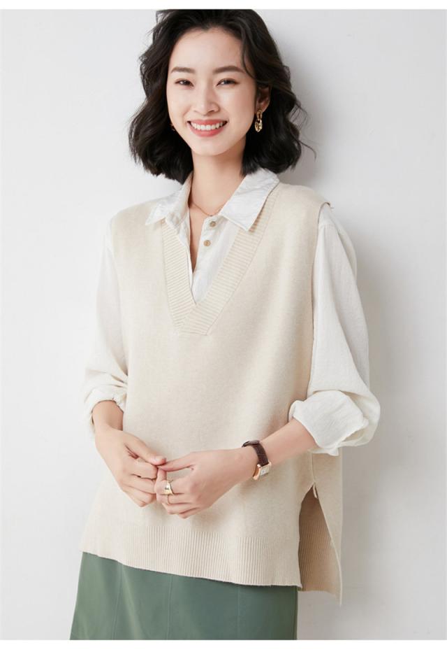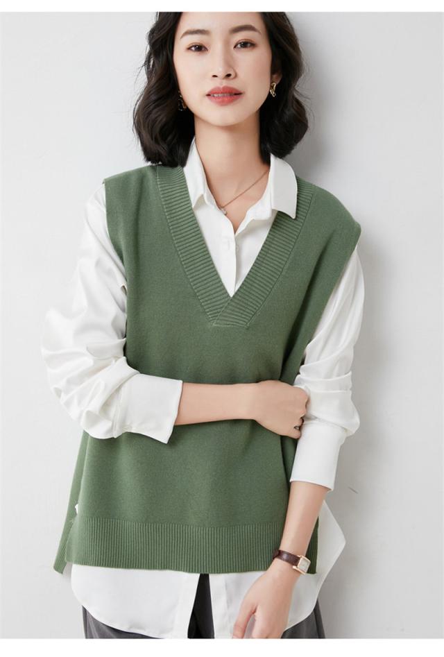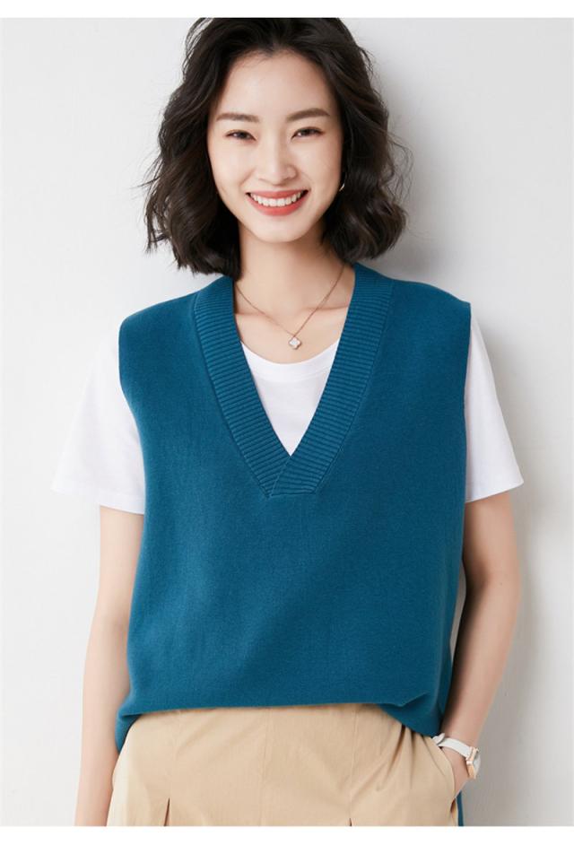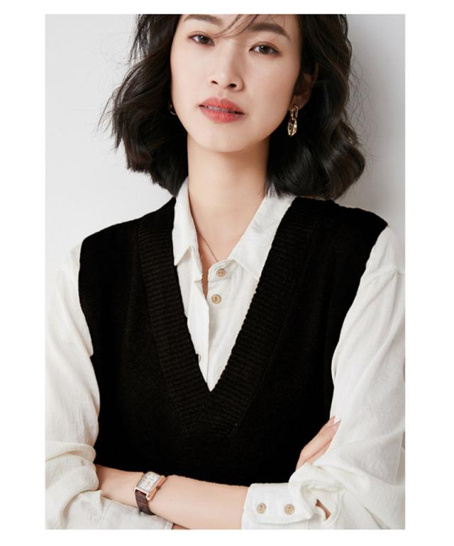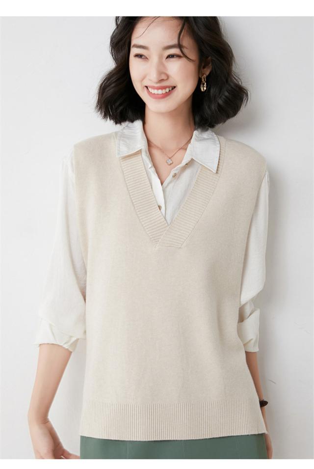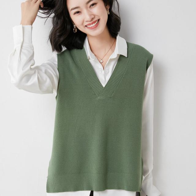ニットベスト レディース チョッキ トップス Vネック 柔らか ゆったり プルオーバー ベスト ジレー セーター 無地 秋コーデ