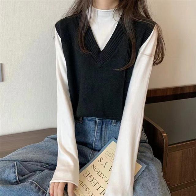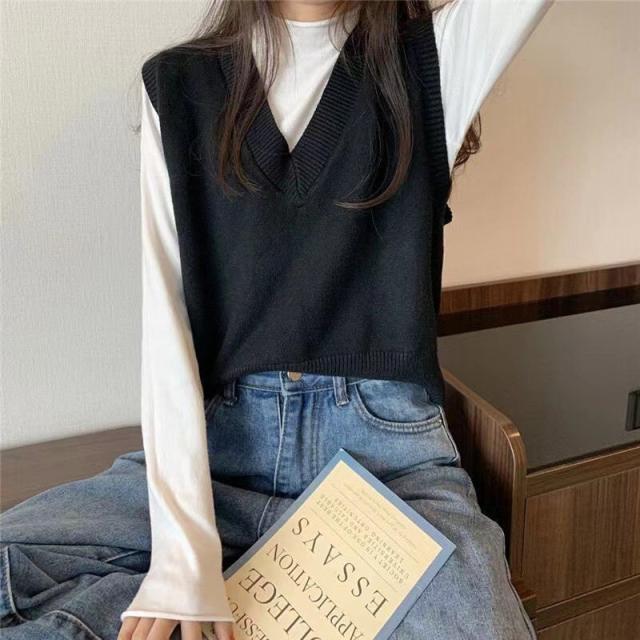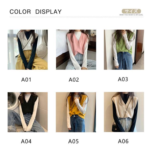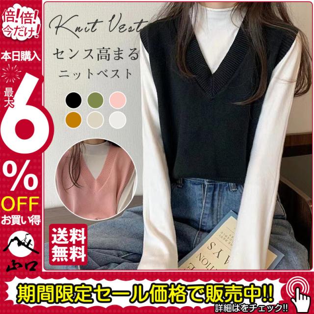 ニットベスト レディース チョッキ トップス Vネック 柔らか ゆったり プルオーバー ベスト ジレー セーター 無地 秋コーデ