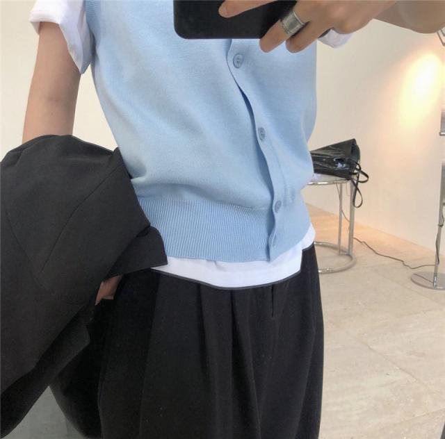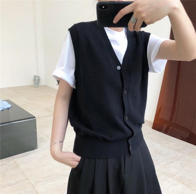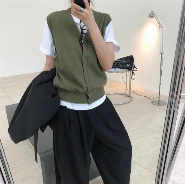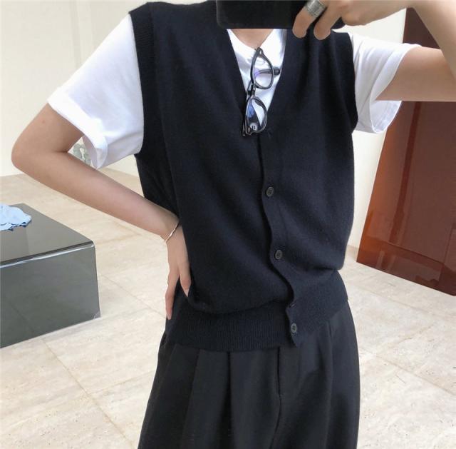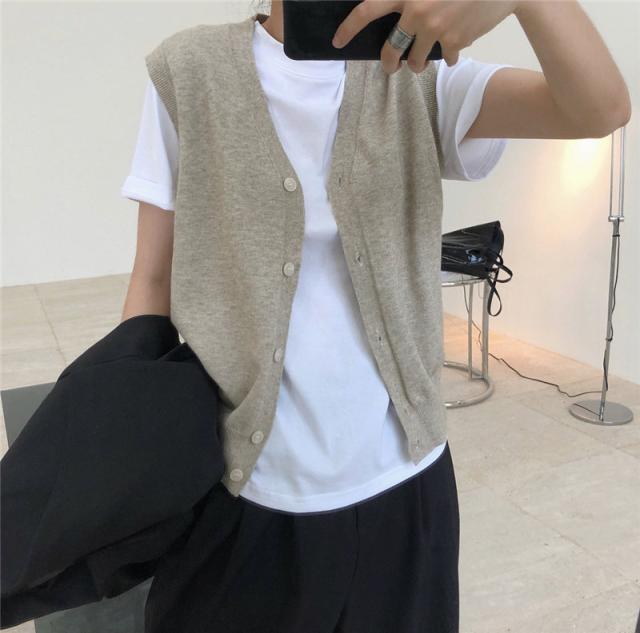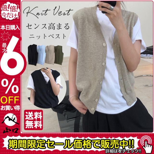 ニットベスト レディース チョッキ トップス Vネック 柔らか ゆったり プルオーバー 前開け ジレー セーター 無地 秋コーデ
