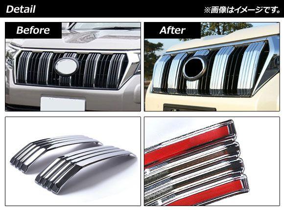 フロントグリルカバー トヨタ ランドクルーザープラド 150系 後期 カメラ装着車非対応 2017年09月〜 鏡面シルバー ABS製 入数:1セット(6個) AP-FG535