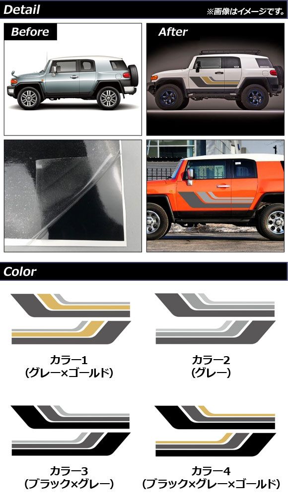 サイドドアステッカー トヨタ FJクルーザー GSJ15W 2010年12月〜2018年01月 カラー3 入数:1セット(左右) AP-XT1701-COL3