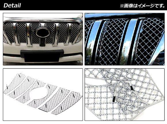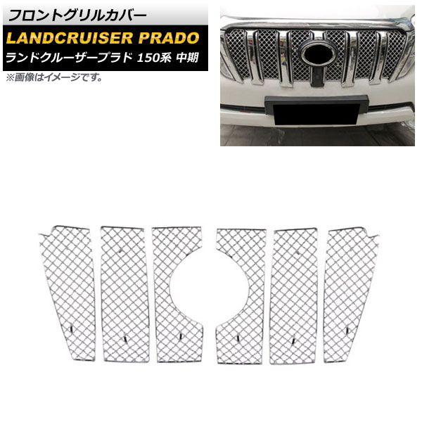 フロントグリルカバー トヨタ ランドクルーザープラド 150系 中期 2013年09月〜2017年08月 シルバー ステンレス製 AP-FG528 入数:1セット(6個)