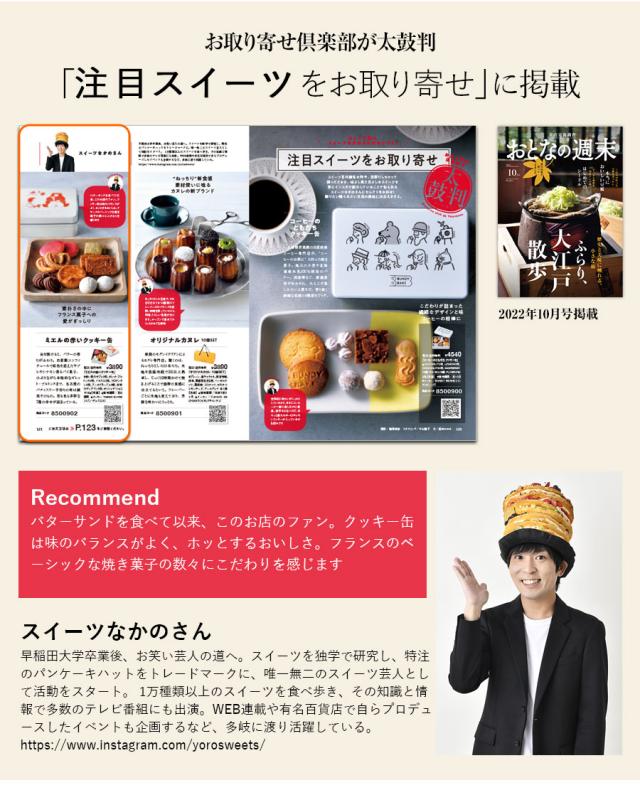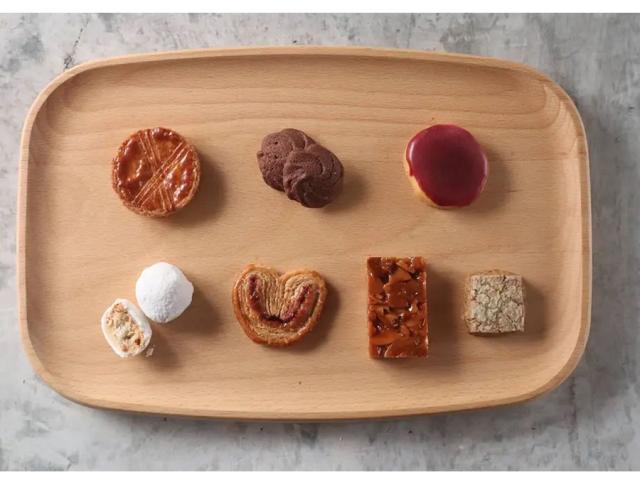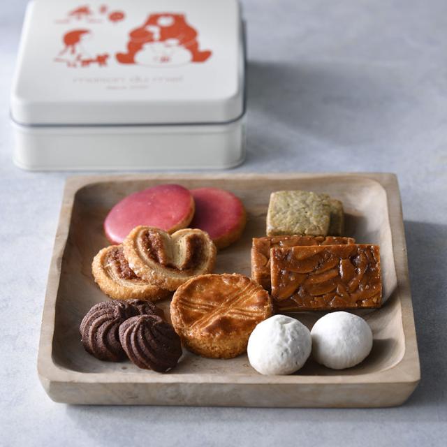缶を開けると、バターの香りがふわり。自家製コンフィチュールで紅色を添えたサブレやシナモン香るパイ菓子、小ぶりながら本格的なガレット・ブルトンヌまで、名古屋のパティスリー手作りの味は誠実そのもの。形も色も多彩な7種の幸せが詰まっている。