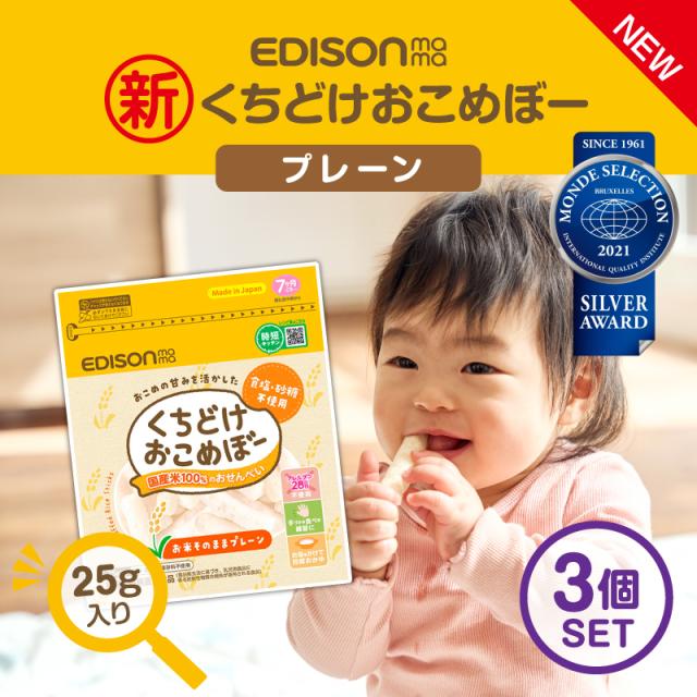 EDISONmamaエジソンママ くちどけおこめぼー【プレーン】【3個セット】からだにやさしい赤ちゃん用お菓子国産米のおせんべい 離乳食 25g入り おこめぼー ベビースナック ベビーおやつ