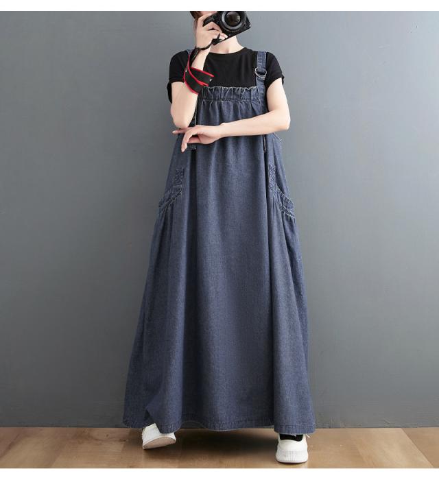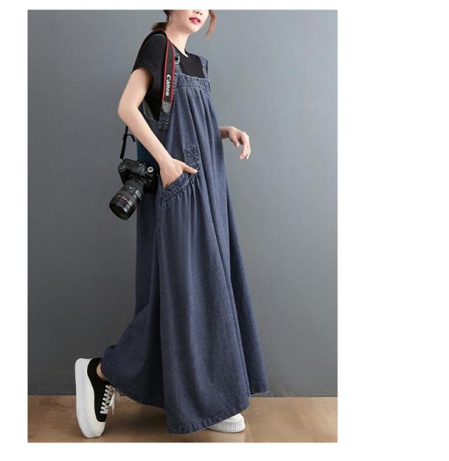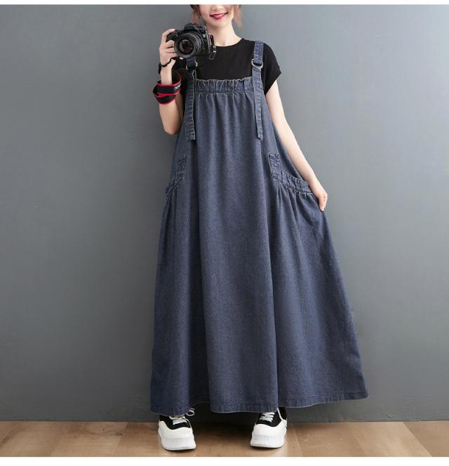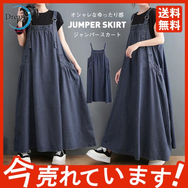 デニムスカート レディース ワンピース サロペット ジャンパースカート デニム オールインワン ロング 大きいサイズ 体型カバー