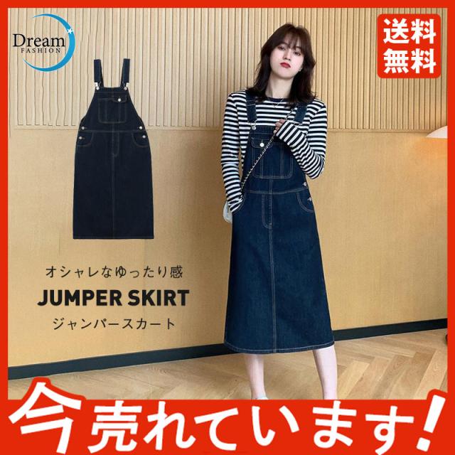 デニムスカート レディース ワンピース ジャンパースカート ボトムス 大人 春 夏 秋 デニム 体型カバー 高級感 魅せる ギフト
