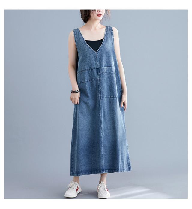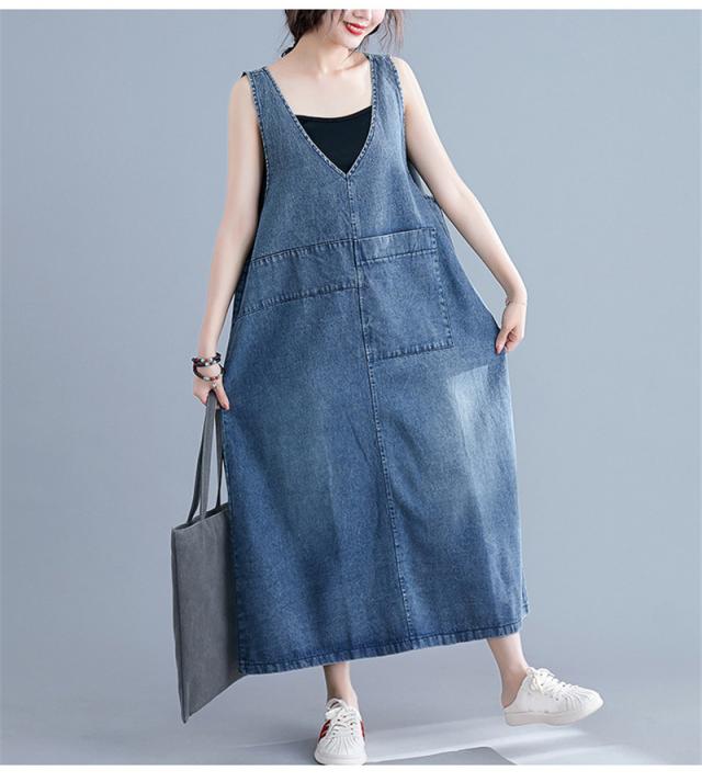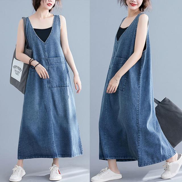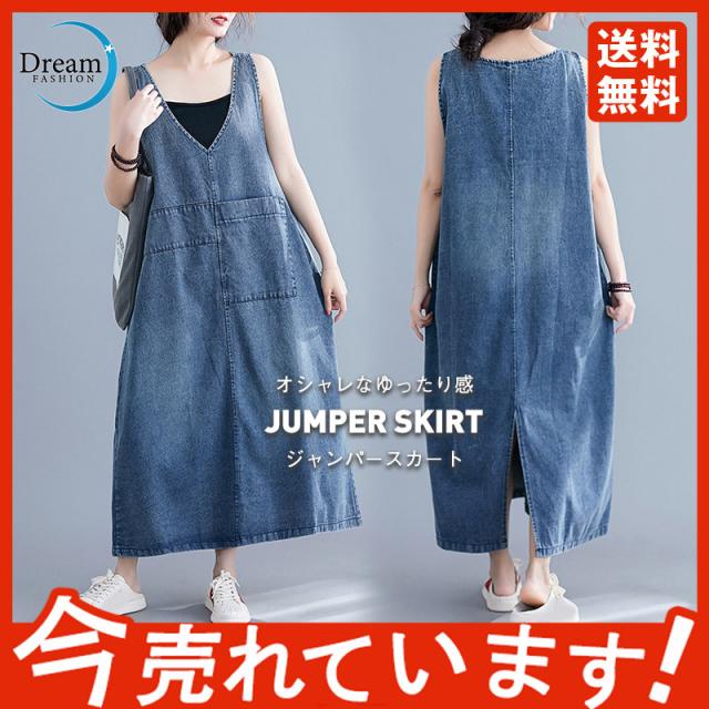 デニムスカート レディース ワンピース ジャンパースカート ボトムス Vネック 体型カバー 通勤 大人 上品 大きいサイズ おしゃ