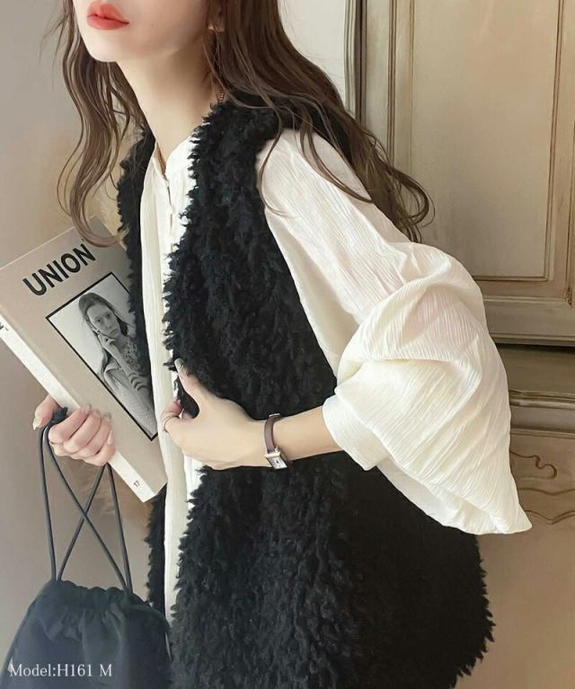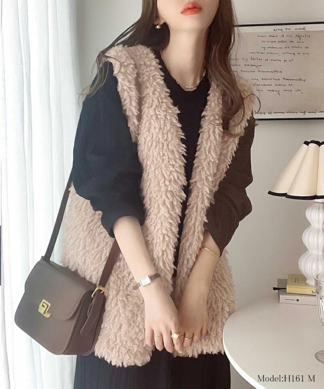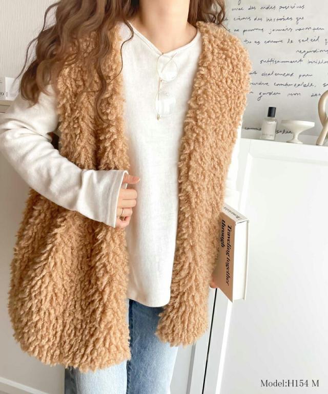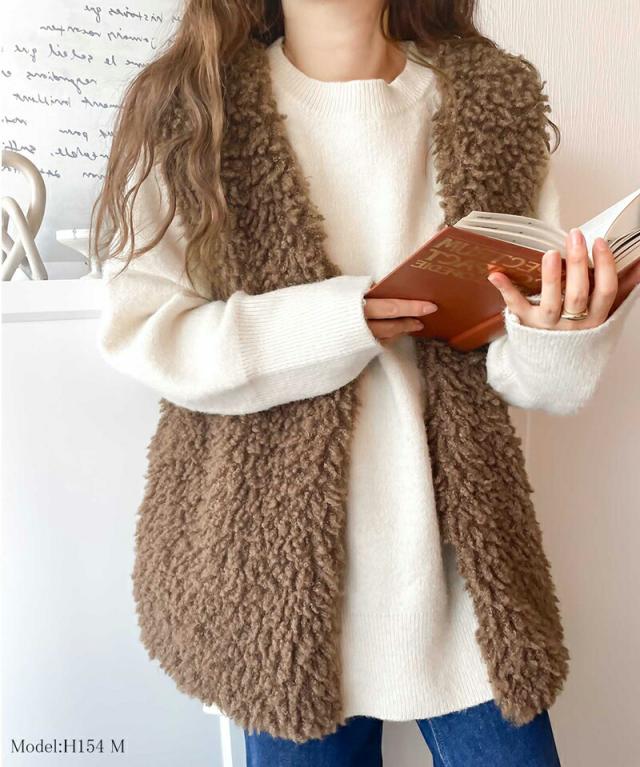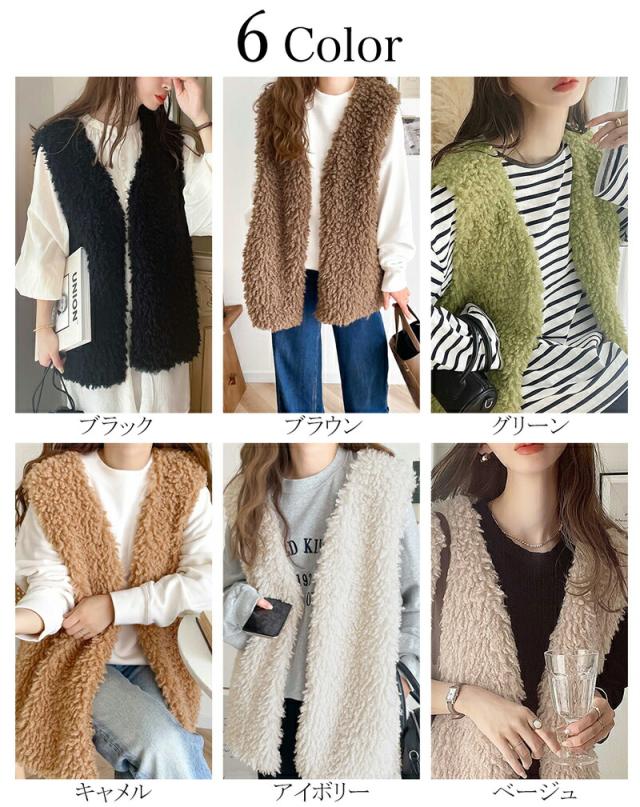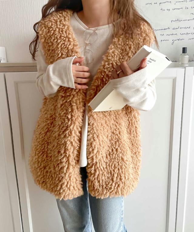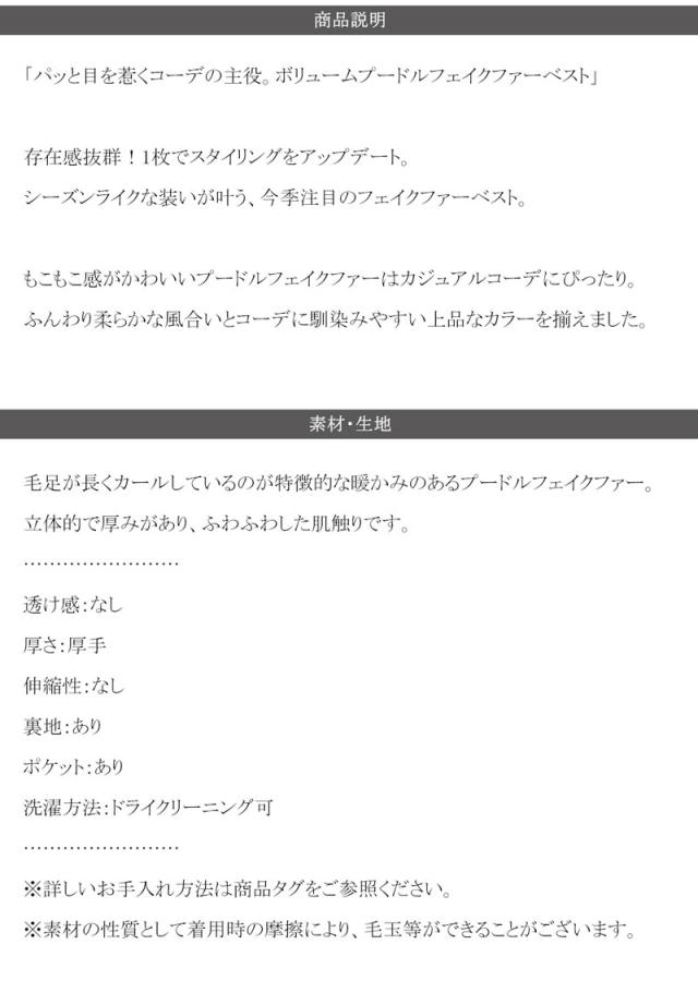 秋新作 クラシカルエルフ レディース 体型カバー トップス ベスト プードル フェィクファー ファー もこもこ ふんわり 柔らか 大きいサイズ ce1010139